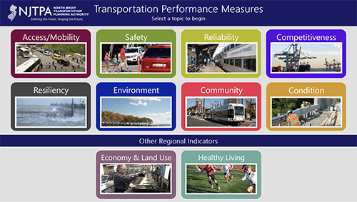 The NJTPA has updated its dashboard of regional performance measures, providing insights into trends affecting transportation in seven areas: access mobility, safety, reliability, competitiveness, environment, community and infrastructure condition. The dashboard and facts sheets related to the measures are at NJTPA.org/RegionalPerformance.